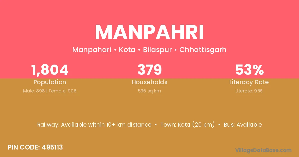 Kota (20 km) is the nearest town to Manpahri village for major economic activities and is located approximately 20 km away.
