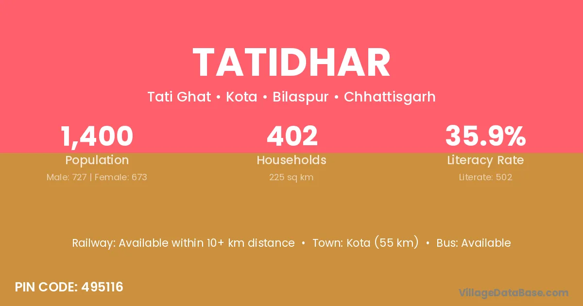 According to Census 2011 information, the village code of Tatidhar village is 495116.