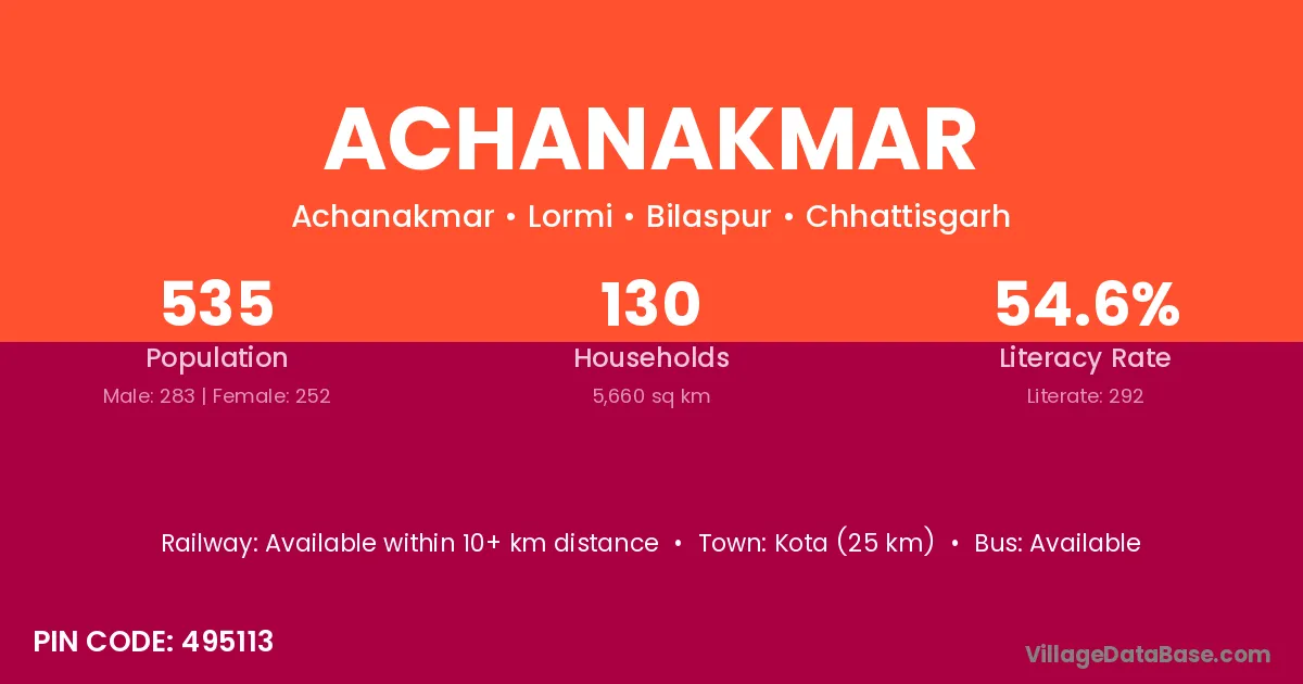According to Census 2011 information, the village code of Achanakmar village is 495113.