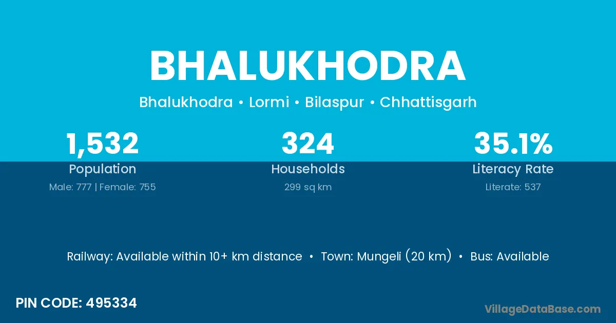 Mungeli (20 km) is the nearest town to Bhalukhodra village for major economic activities and is located approximately 20 km away.