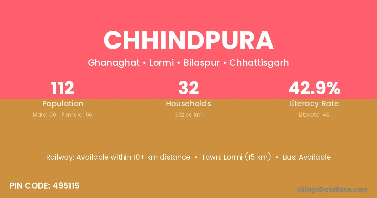 Lormi (15 km) is the nearest town to Chhindpura village for major economic activities and is located approximately 15 km away.
