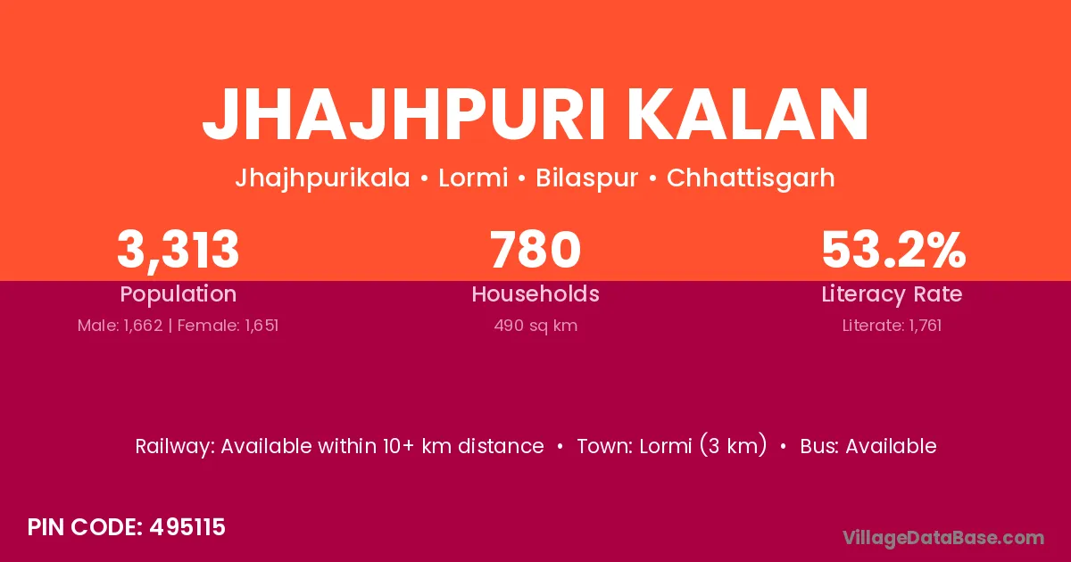 Lormi (3 km) is the nearest town to Jhajhpuri Kalan village for major economic activities and is located approximately 3 km away.