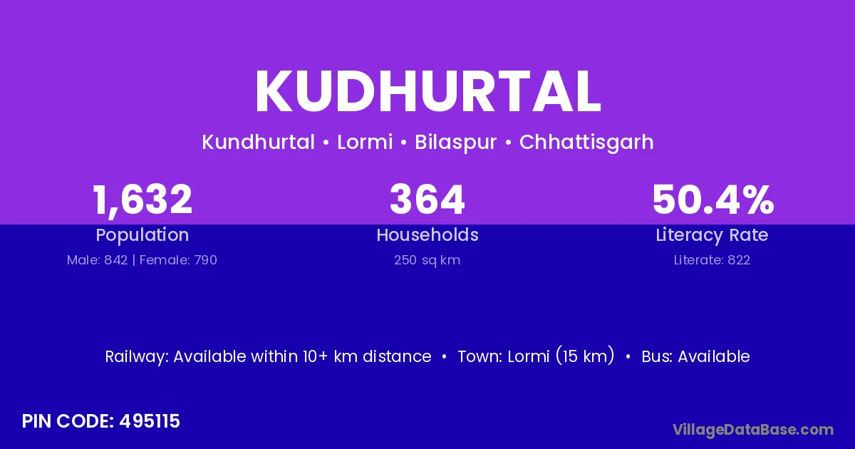 Lormi (15 km) is the nearest town to Kudhurtal village for major economic activities and is located approximately 15 km away.