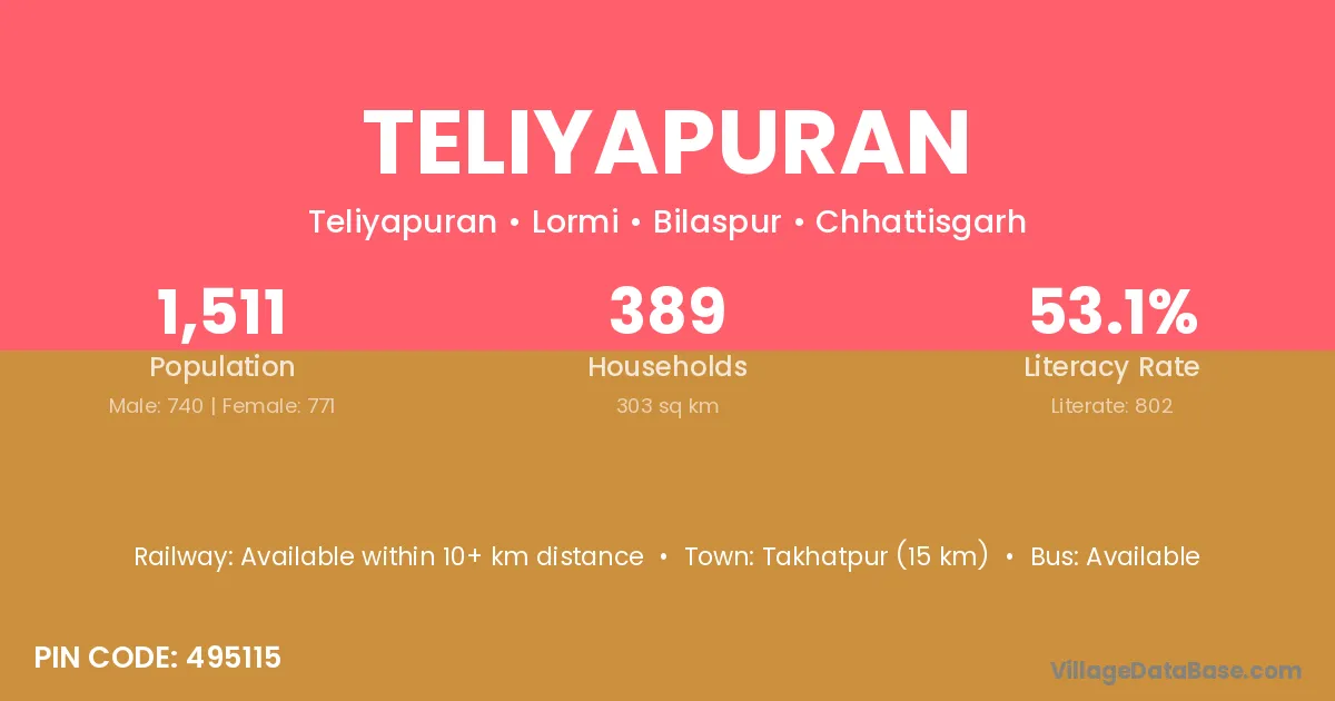 According to Census 2011 information, the village code of Teliyapuran village is 495115.