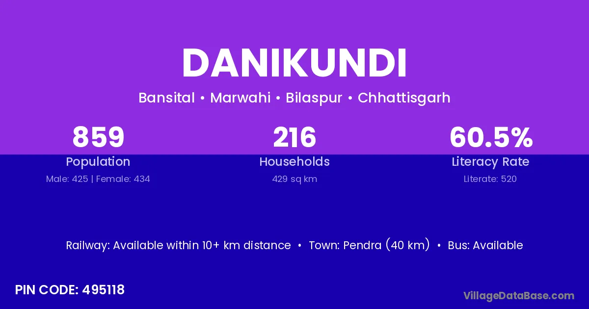 According to Census 2011 information, the village code of Danikundi village is 495118.