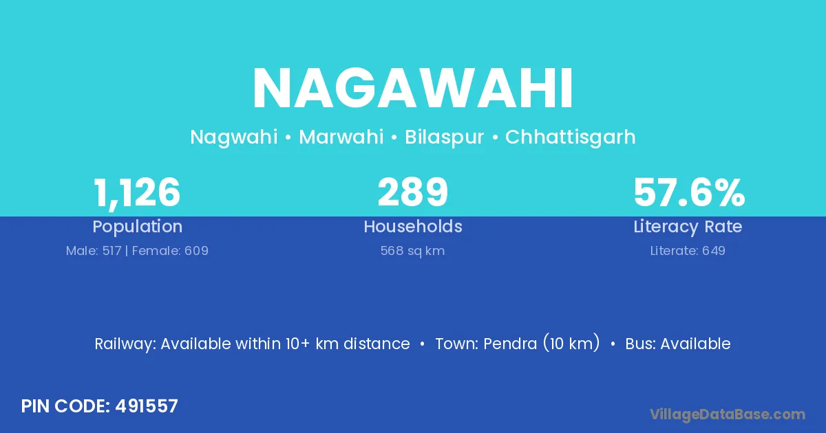 Pendra (10 km) is the nearest town to Nagawahi village for major economic activities and is located approximately 10 km away.