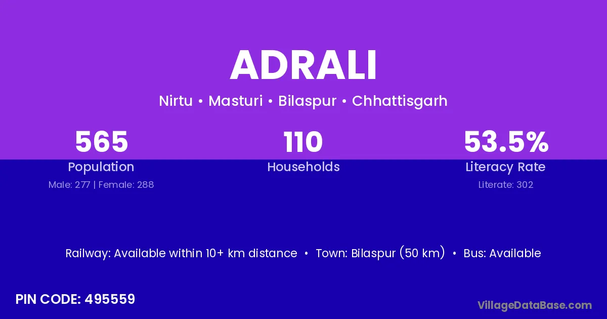 According to Census 2011 information, the village code of Adrali village is 495559.