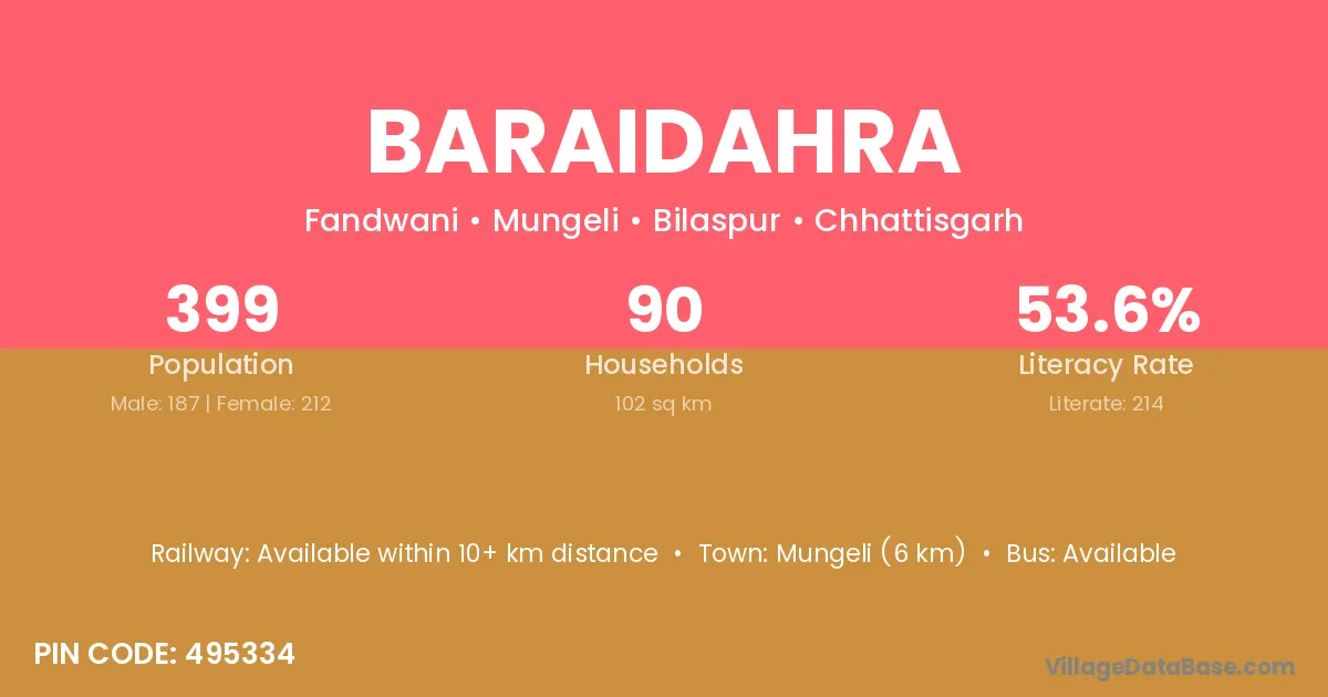 Mungeli (6 km) is the nearest town to Baraidahra village for major economic activities and is located approximately 6 km away.