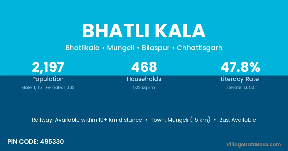 Mungeli (15 km) is the nearest town to Bhatli Kala village for major economic activities and is located approximately 15 km away.
