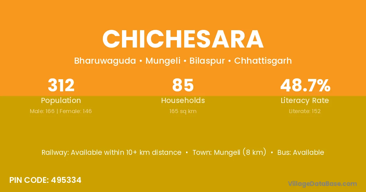 Mungeli (8 km) is the nearest town to Chichesara village for major economic activities and is located approximately 8 km away.