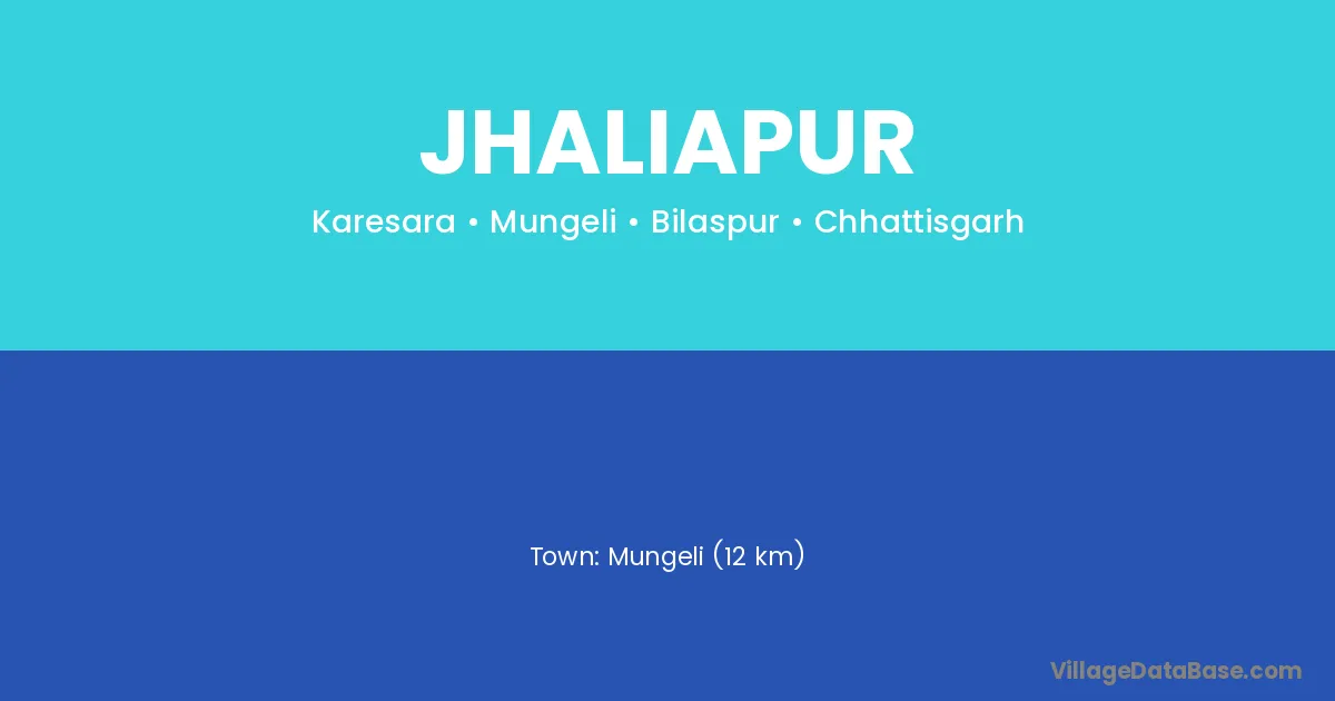 Mungeli (12 km) is the nearest town to Jhaliapur village for major economic activities and is located approximately 12 km away.