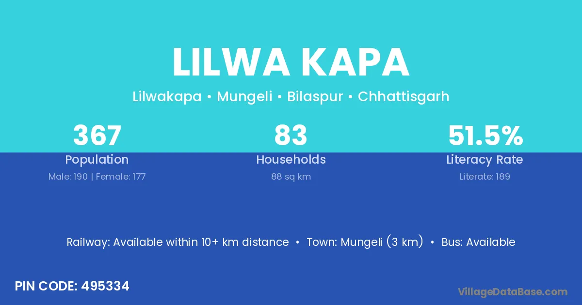Lilwa Kapa village has a total population of 367 people, of which 190 are males and 177 are females.