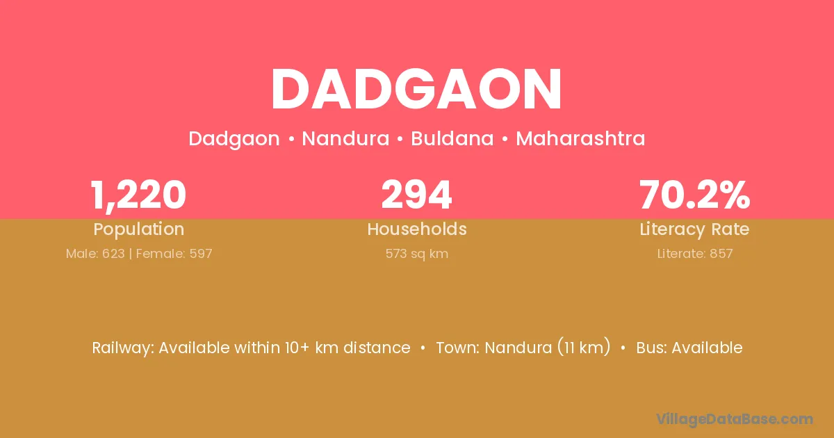 Dadgaon village has a total population of 3,429 people, of which 1,770 are males and 1,659 are females.