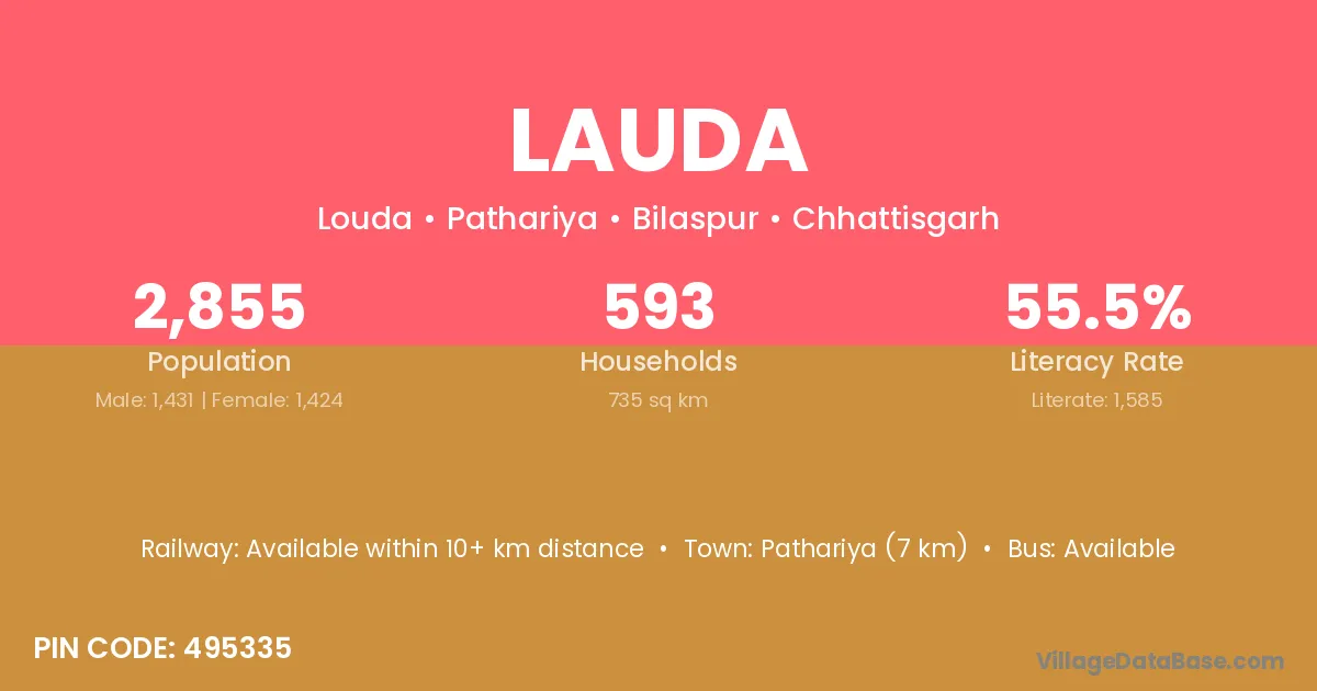 Lauda village is located in the Pathariya Tehsil of the Bilaspur district in Chhattisgarh .