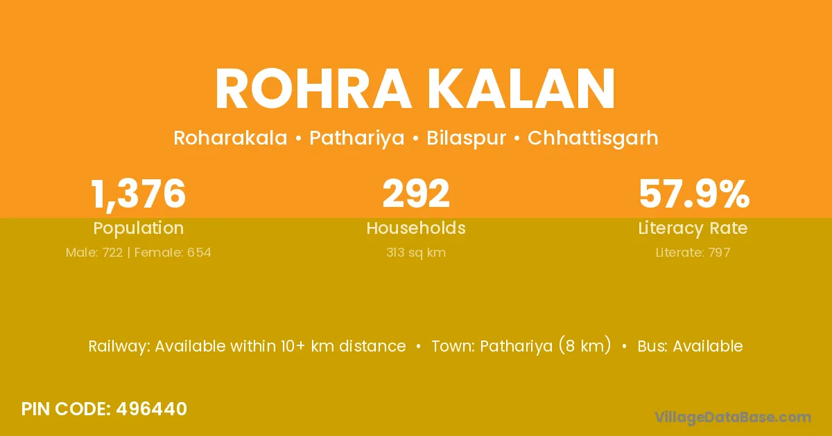 Pathariya (8 km) is the nearest town to Rohra Kalan village for major economic activities and is located approximately 8 km away.