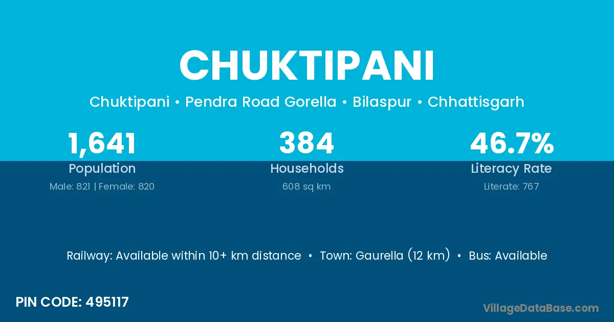 Gaurella (12 km) is the nearest town to Chuktipani village for major economic activities and is located approximately 12 km away.
