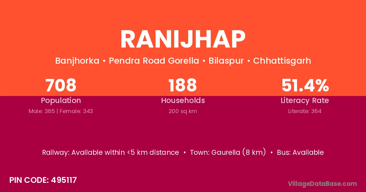 Gaurella (8 km) is the nearest town to Ranijhap village for major economic activities and is located approximately 8 km away.