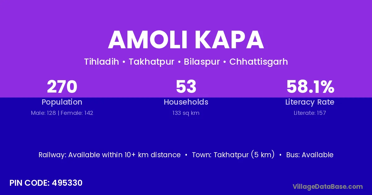 Amoli Kapa village has a total population of 270 people, of which 128 are males and 142 are females.