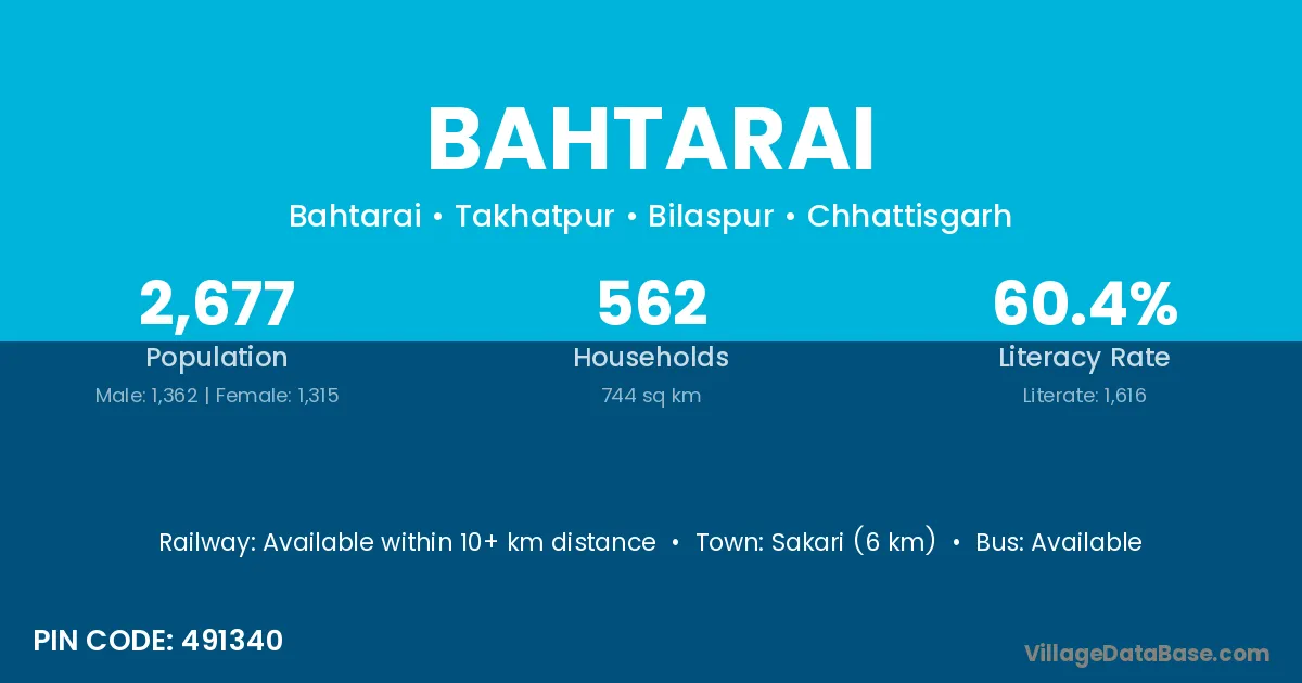 Sakari (6 km) is the nearest town to Bahtarai village for major economic activities and is located approximately 6 km away.