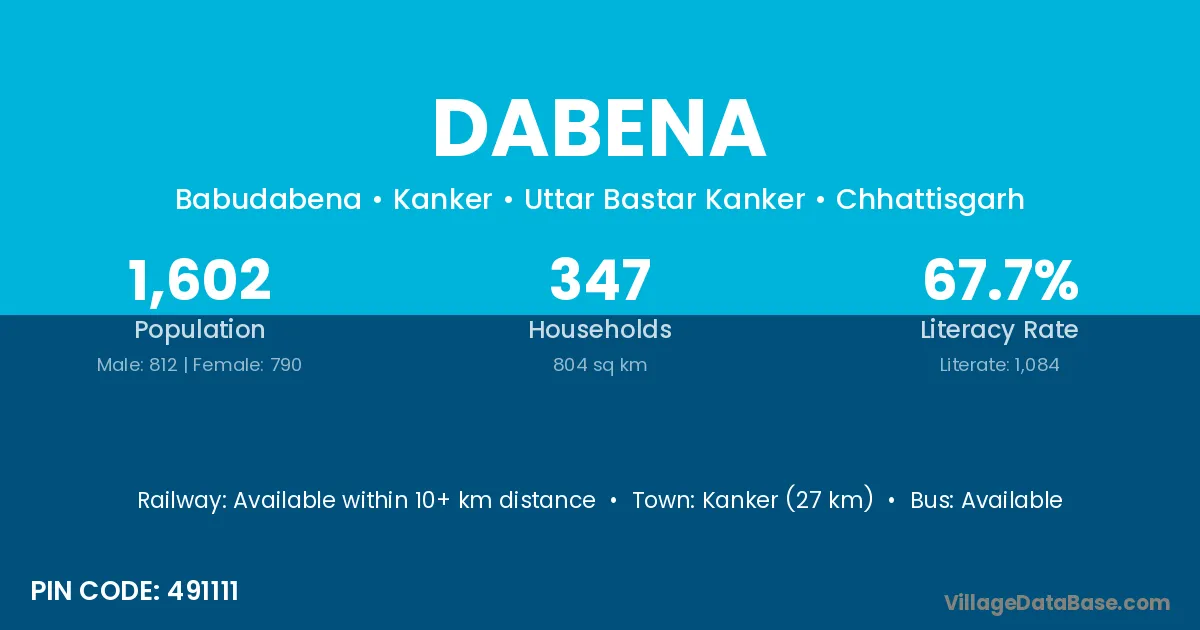 According to Census 2011 information, the village code of Dabena village is 495003.