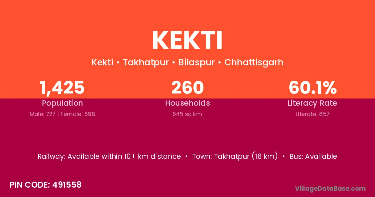 Takhatpur (16 km) is the nearest town to Kekti village for major economic activities and is located approximately 16 km away.
