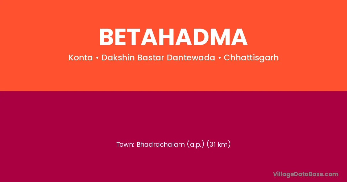 Bhadrachalam (a.p.) (31 km) is the nearest town to Betahadma village for major economic activities and is located approximately 31 km away.