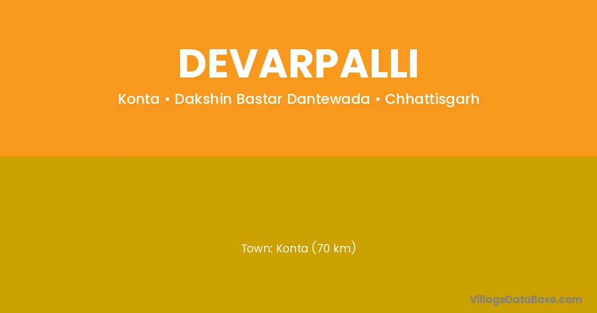 Konta (70 km) is the nearest town to Devarpalli village for major economic activities and is located approximately 70 km away.