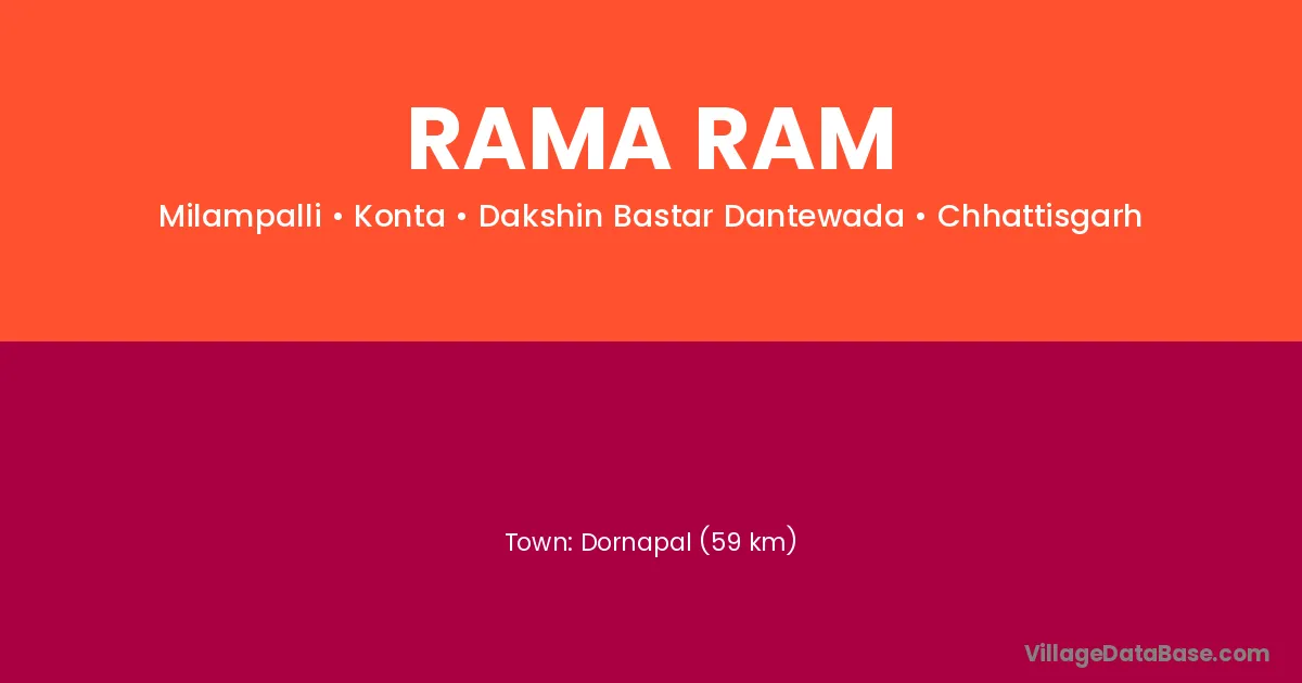 Dornapal (59 km) is the nearest town to Rama Ram village for major economic activities and is located approximately 59 km away.