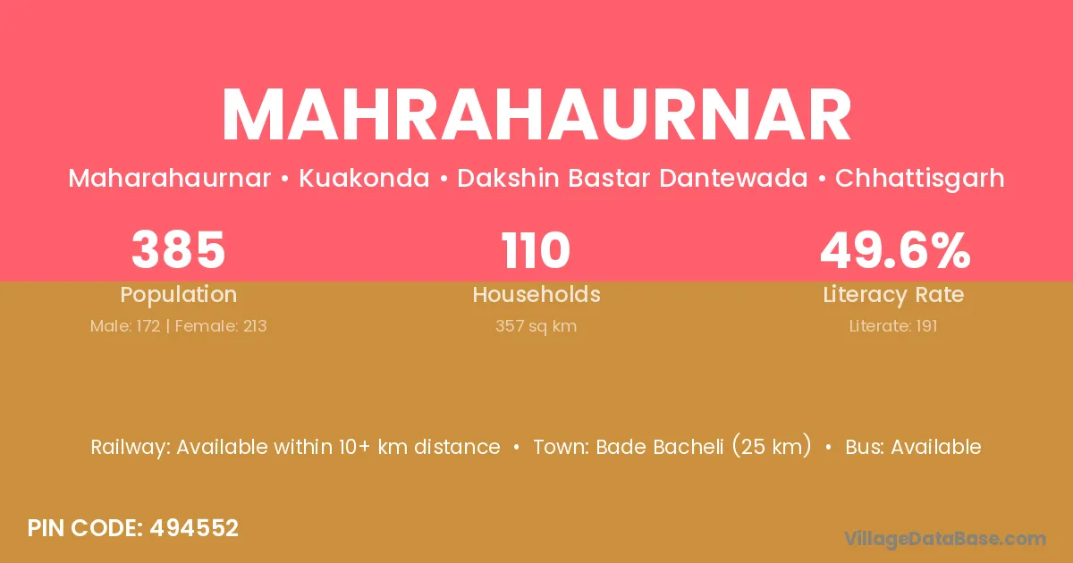 Bade Bacheli (25 km) is the nearest town to Mahrahaurnar village for major economic activities and is located approximately 25 km away.