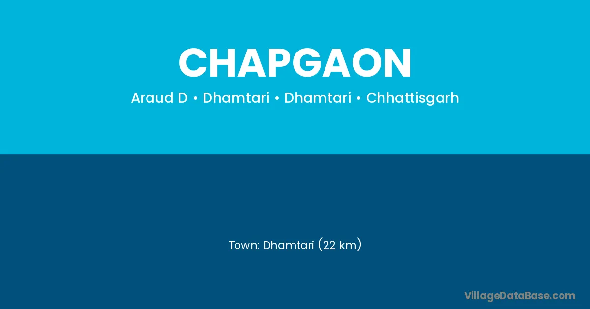 Dhamtari (22 km) is the nearest town to Chapgaon village for major economic activities and is located approximately 22 km away.