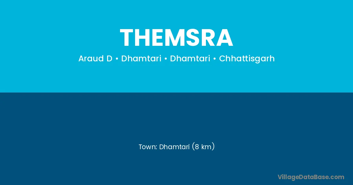 Dhamtari (8 km) is the nearest town to Themsra village for major economic activities and is located approximately 8 km away.