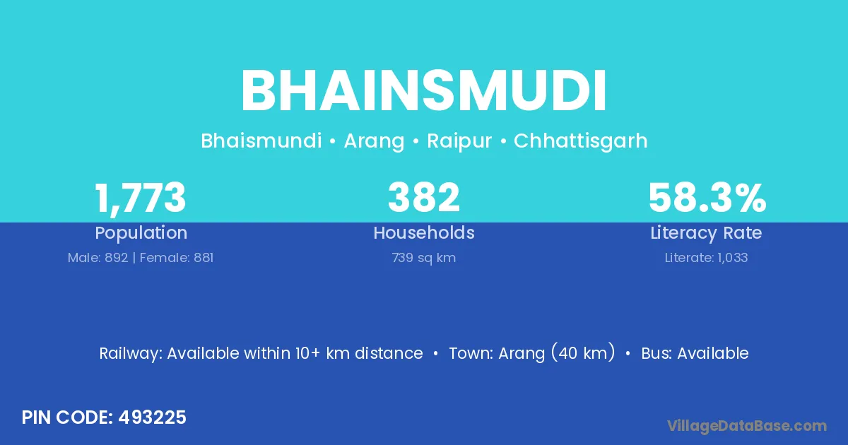 According to Census 2011 information, the village code of Bhainsmudi village is 493663.