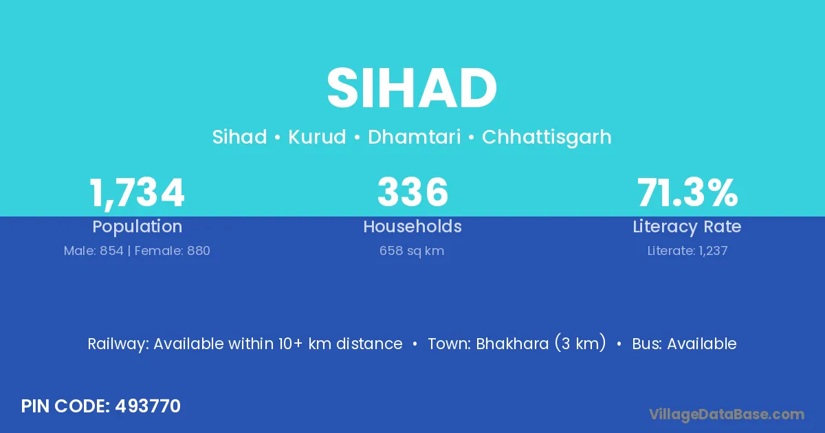 Bhakhara (3 km) is the nearest town to Sihad village for major economic activities and is located approximately 3 km away.