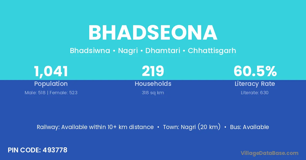 Bhadseona village is located in the Nagri Tehsil of the Dhamtari district in Chhattisgarh .