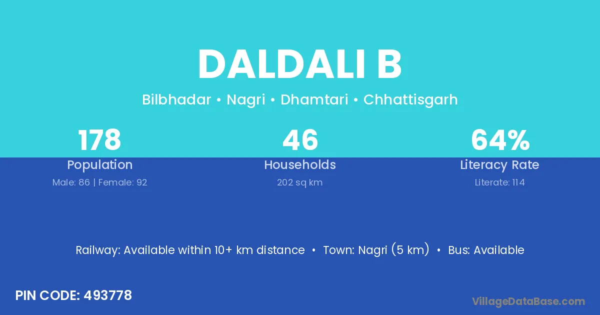 Nagri (5 km) is the nearest town to Daldali B village for major economic activities and is located approximately 5 km away.