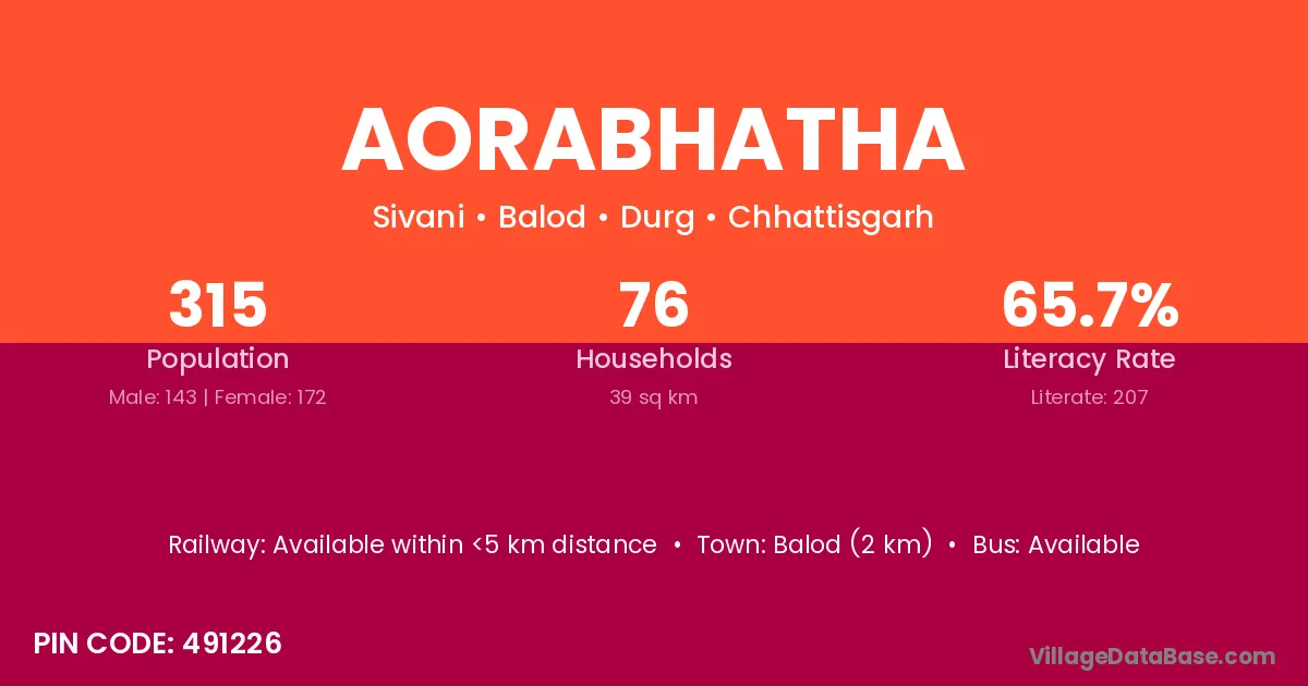 Balod (2 km) is the nearest town to Aorabhatha village for major economic activities and is located approximately 2 km away.