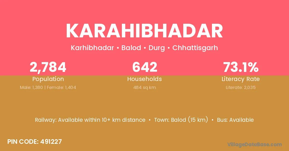 Balod (15 km) is the nearest town to Karahibhadar village for major economic activities and is located approximately 15 km away.
