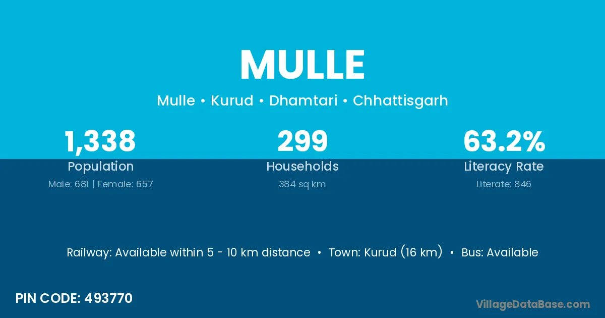 Balod (21 km) is the nearest town to Mulle village for major economic activities and is located approximately 21 km away.
