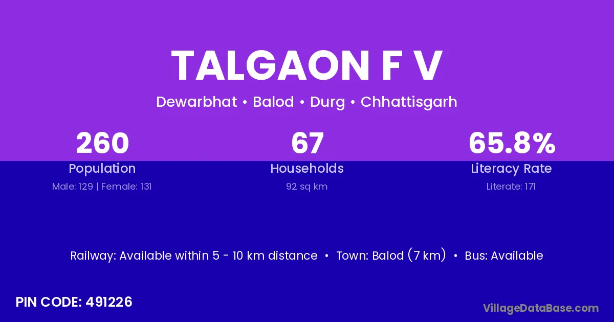 According to Census 2011 information, the village code of Talgaon F V village is 491226.