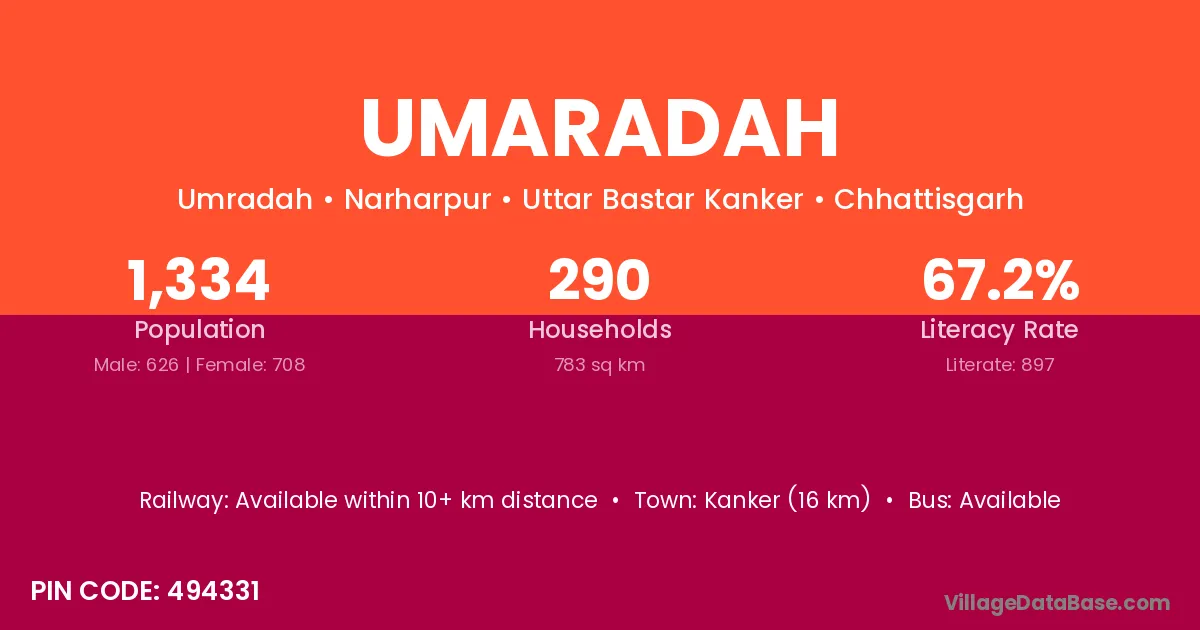 Balod (7 km) is the nearest town to Umaradah village for major economic activities and is located approximately 7 km away.