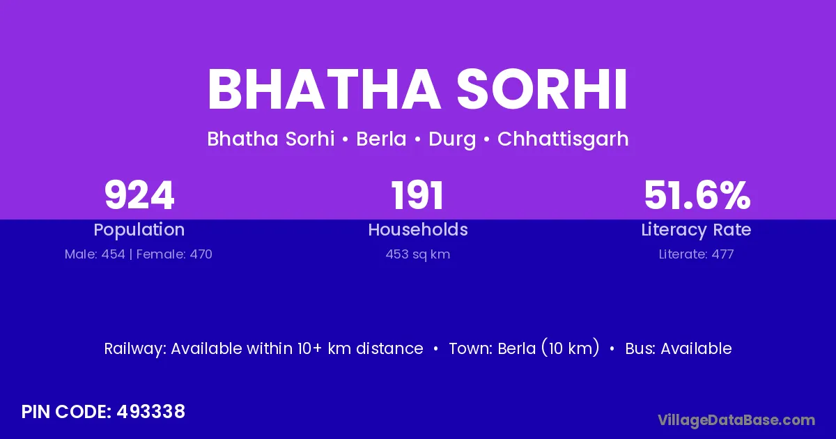 Bhatha Sorhi village has a total population of 924 people, of which 454 are males and 470 are females.