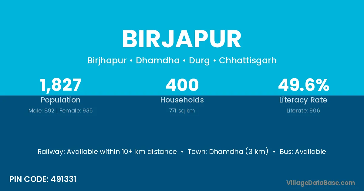 Dhamdha (3 km) is the nearest town to Birjapur village for major economic activities and is located approximately 3 km away.