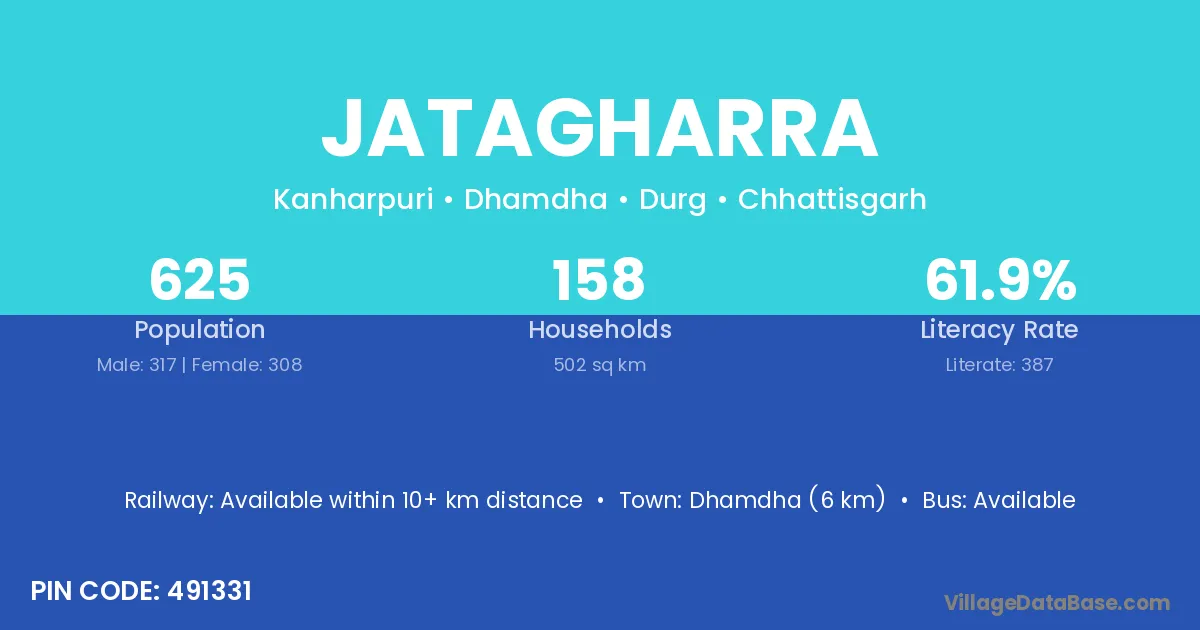 Dhamdha (6 km) is the nearest town to Jatagharra village for major economic activities and is located approximately 6 km away.