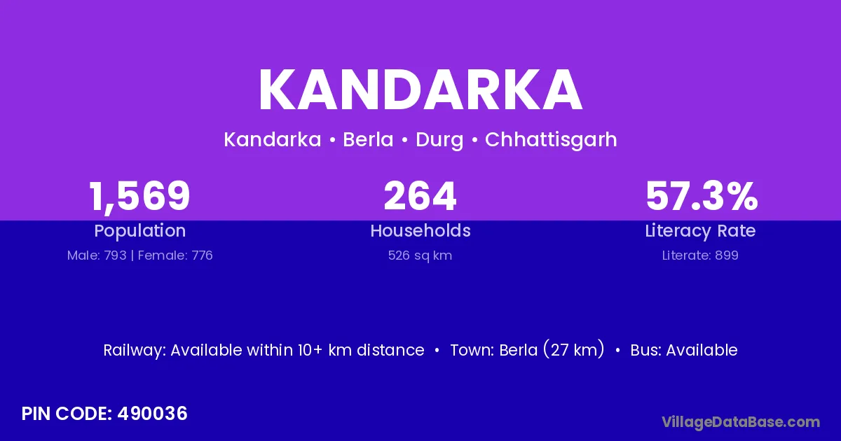 According to Census 2011 information, the village code of Kandarka village is 490042.