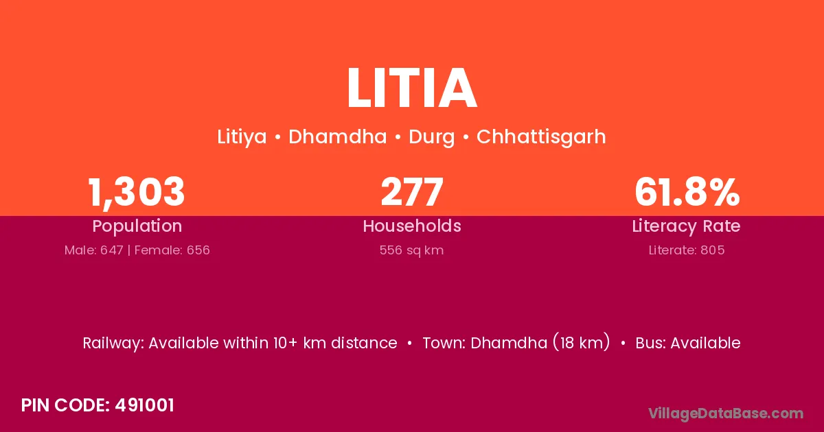 Litia village is located in the Dhamdha Tehsil of the Durg district in Chhattisgarh .