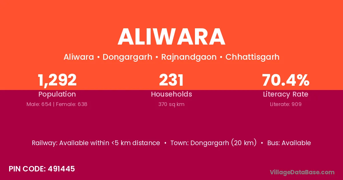 Dondiluhara (25 km) is the nearest town to Aliwara village for major economic activities and is located approximately 25 km away.