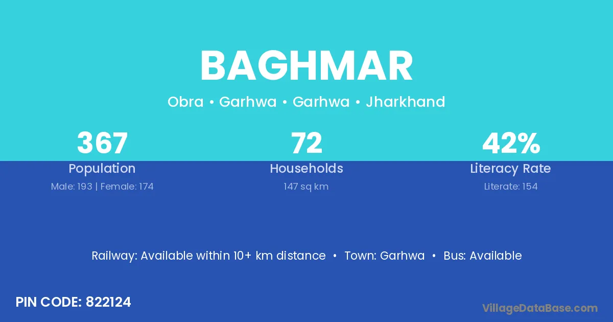 Baghmar village has a total population of 97 people, of which 50 are males and 47 are females.