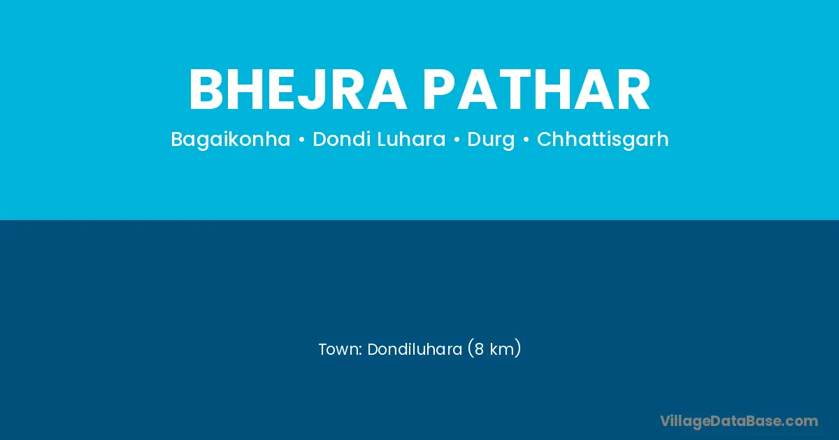 Dondiluhara (8 km) is the nearest town to Bhejra Pathar village for major economic activities and is located approximately 8 km away.