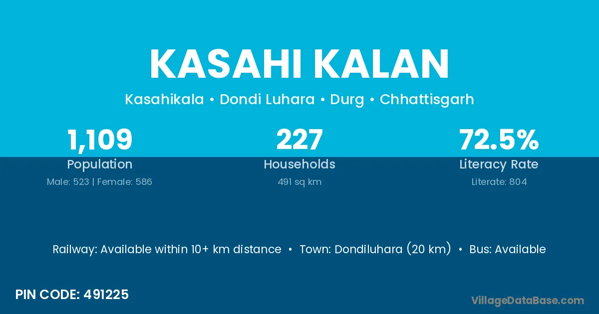 According to Census 2011 information, the village code of Kasahi Kalan village is 491225.