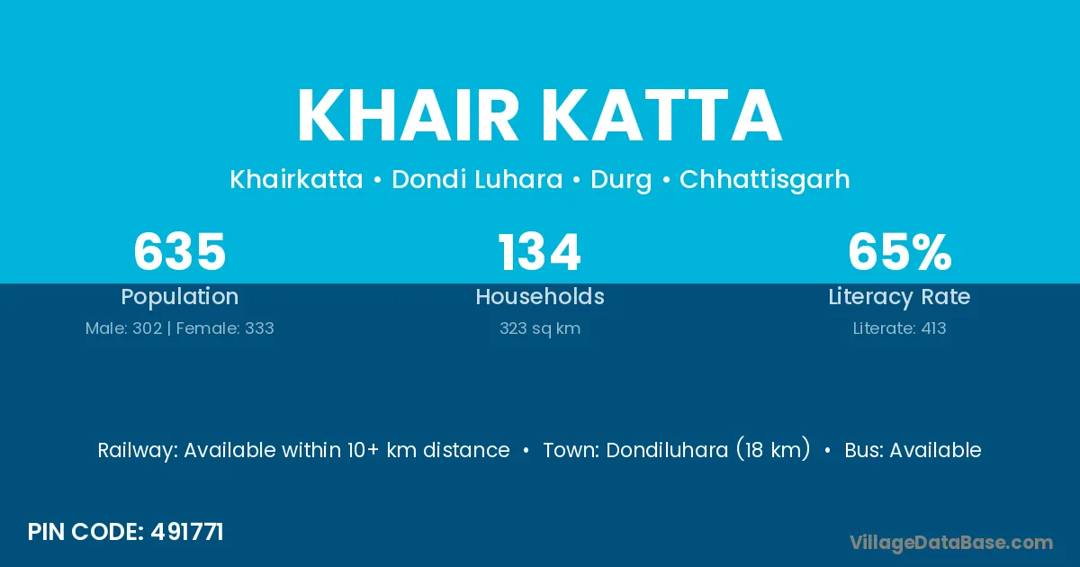 Dondiluhara (18 km) is the nearest town to Khair Katta village for major economic activities and is located approximately 18 km away.